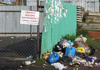 Разруха, как известно нам от классиков, начинается в головах. Но как бы ни было плохо с головой — вряд ли кто-то будет раскладывать мусор по всем углам своего дома. Обычно для этого используют помойное ведро. Однако сейчас жители южной стороны Голицына вынуждены раскидывать мусор по углам. Все потому, что в чью-то административную голову пришла идея закрыть единственную в округе помойку. В один прекрасный день на месте контейнеров на пересечении Владимировского и Железнодорожного проспектов появились забор и табличка: “Свалка мусора запрещена. Штраф 15 тысяч”.