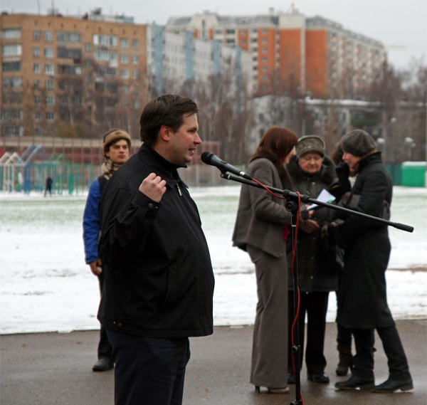 Первым слово было предоставлено депутату города Голицыно, кандидату в депутаты Мособлдумы от «Правого дела» Алексею Дуленкову. Известный в районе оппозиционер призвал собравшихся вспомнить, что наступление на права и свободы граждан реально остановить. Четыре года назад на этом же месте проходил митинг против ликвидации местного самоуправления. Как итог долгой борьбы - самоуправление удалось отстоять. «Если власть покушается на наши права, она должна получать по морде. По наглой медвежьей морде!» - заявил Алексей Дуленков под аплодисменты митингующих.