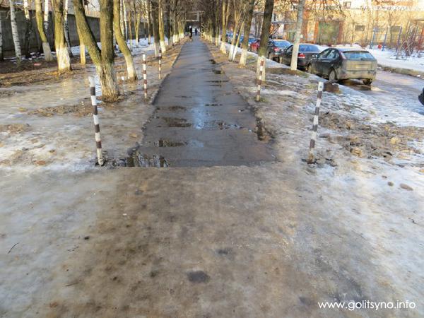 Дорожки покрылись слоем льда, став совершенно непригодными для передвижения без коньков. Однако, деятельности коммунальщиков незаметно. То ли они ждут, когда лед окончательно растает, то ли ждут выпадения снега. В любом случае, ходить пешком по дворам в городе - опасно для жизни.