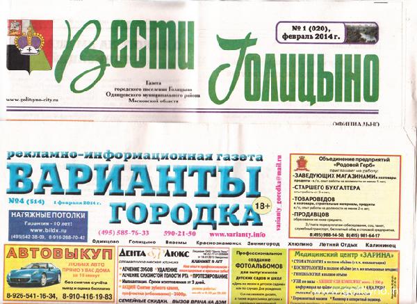 Тот же самый материал, за другой подписью, спустя неделю, появился в печатном органы "Вести Голицыно".