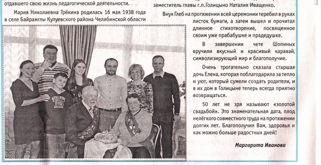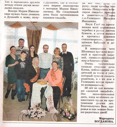 Так, в февральском номере независимой газеты "Варианты городка" была опубликована статья "50 на двоих или золотой юбилей совместной жизни".