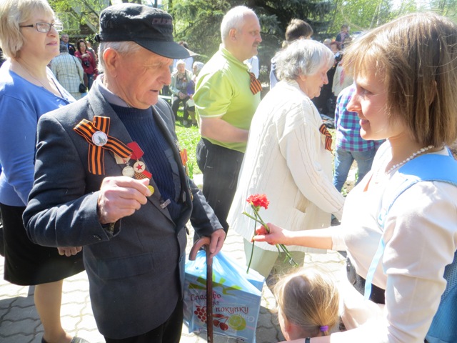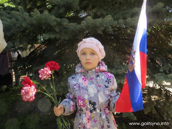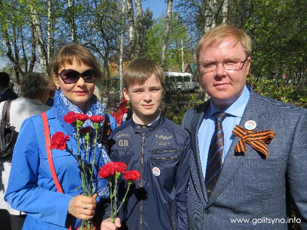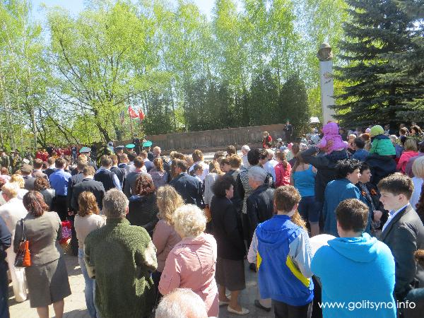 На 9 мая погода не подвела. В теплый солнечный день несколько сотен жителей города Голицыно собрались у памятника на Коммунистическом проспекте, чтобы воздать дань памяти нашим отцам и дедам, павшим в боях за Родину. Многие были с цветами.