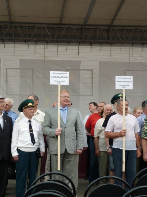 А над всем праздничным мероприятием развивался флаг общественного движения "Голицыно - наш город", руководитель которого - Алексей Ермаков - был инициатором и организатором возрождения Дня пограничника в Голицыно.