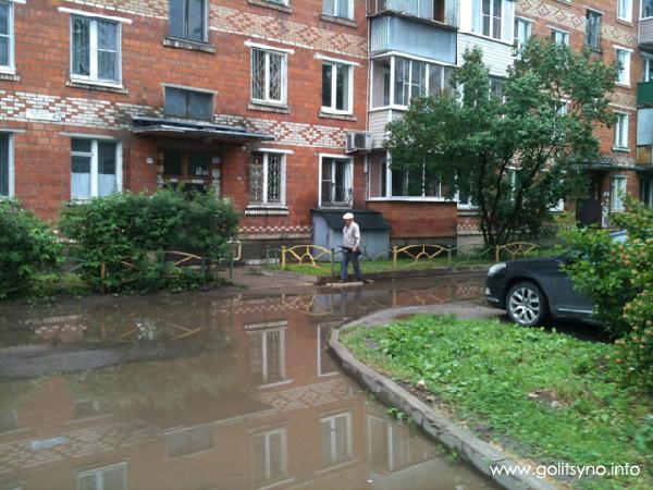 В Голицыно прошел небольшой дождь, как и предсказывали метеорологи. В результате выпадения осадков некоторые проспекты наполнились водой, напоминая бассейны для купания.