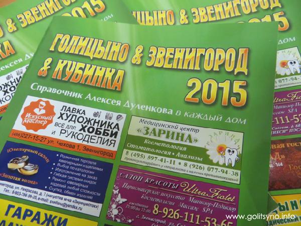 Ежегодная книжка адресов и телефонов на следующий год уже вышла в свет. Шестой год подряд справочник бесплатно доставляется в почтовые ящики многоэтажных домов в городах Голицыно, Звенигорода, Кубинки, а также в поселках Школьный и Городок-17.