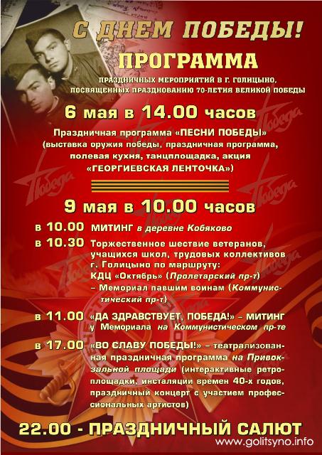 На День Победы голицынцев ожидают торжественное шествие, полевая кухня и салют