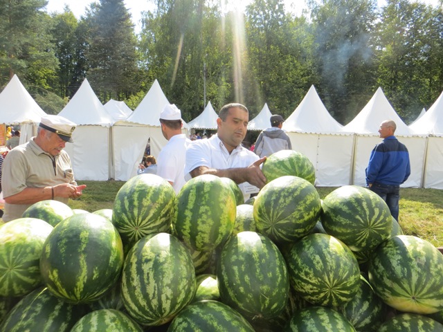 Подкрепиться также не составляло труда. К услугам празднующих было развернуто огромное количество палаток общепита на любой вкус. Цены, правда, не всегда радовали, но можно было всегда выбрать: или купить четыре кусочка шашлыка за 300 рублей, или за те же деньги приобрести арбуз.