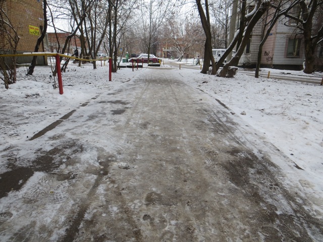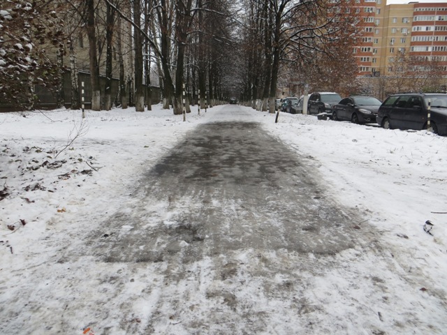 На первом месте, традиционно - территория возле Голицынского Пограничного Института. Каждый год дорожка вдоль забора - это традиционный "Бродвей", по которому с удовольствием дефилируют мамочки с колясками. Это настоящее спасения для неторопливых пешеходов. И дорожка чаще всего безукоризненно подметена и очищена ото льда. Хотя при желании можно найти место, где удастся подскользнуться.